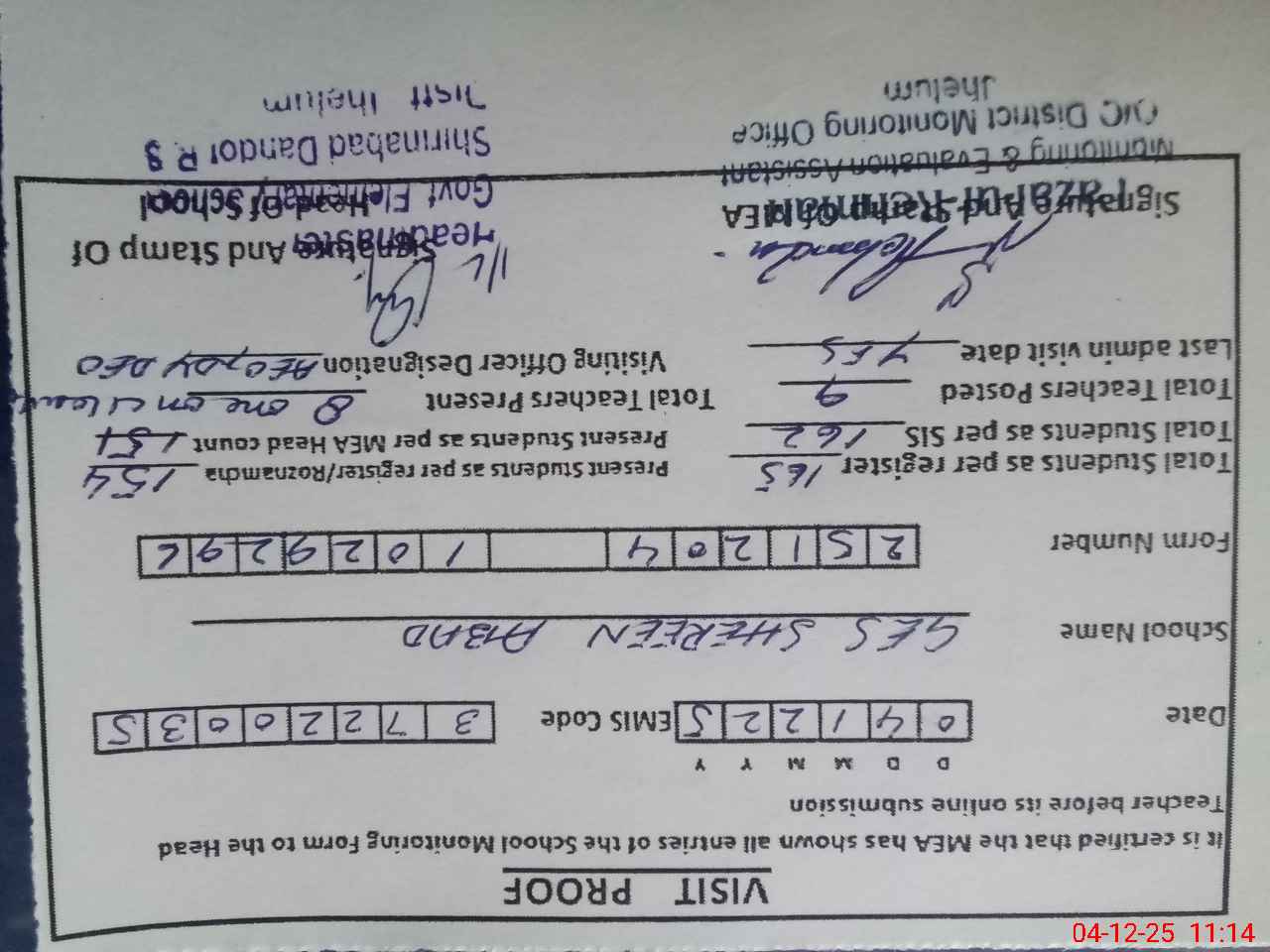 | Certified that this School was Inspected by the Undersigned MEA/DMO Today and the Information Stated Above is as Per Record. | |||||