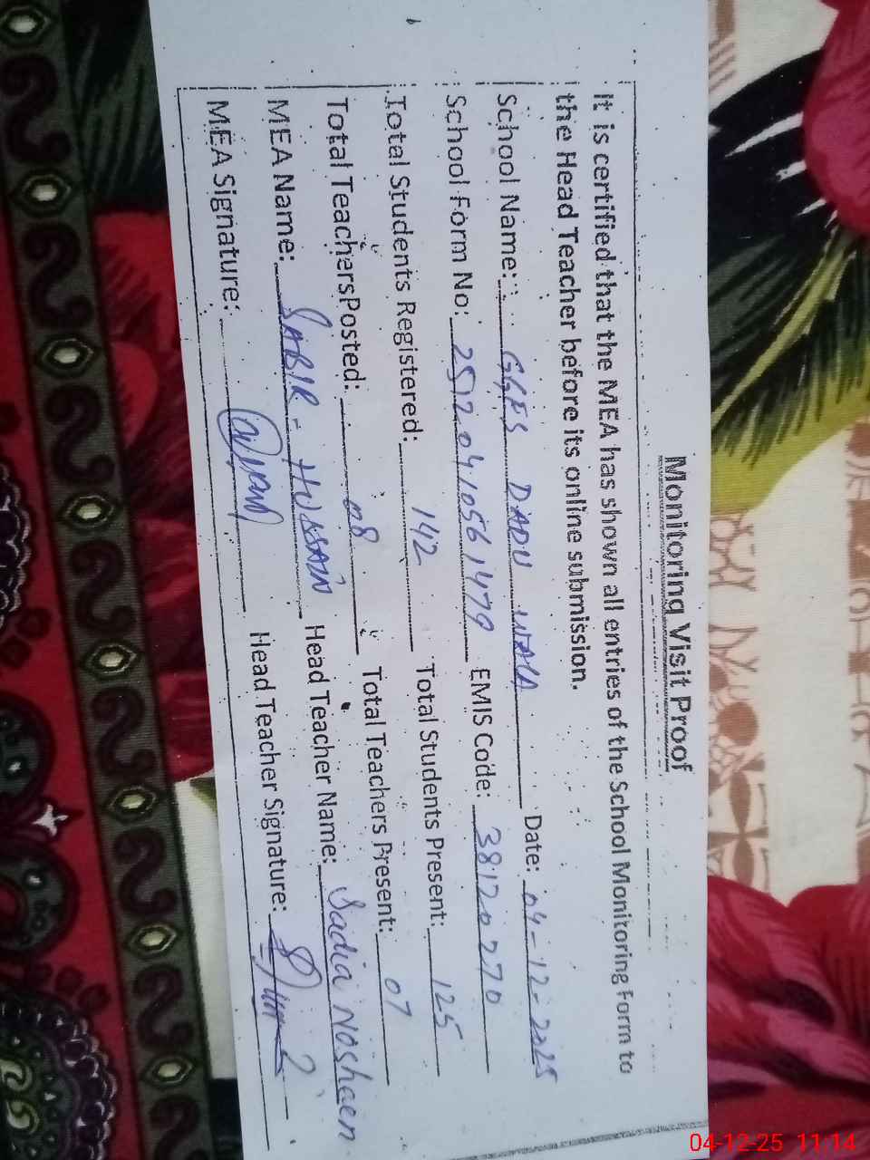 | EMIS Code: 38120270 | Name of School: GGES DADU WALA | |||