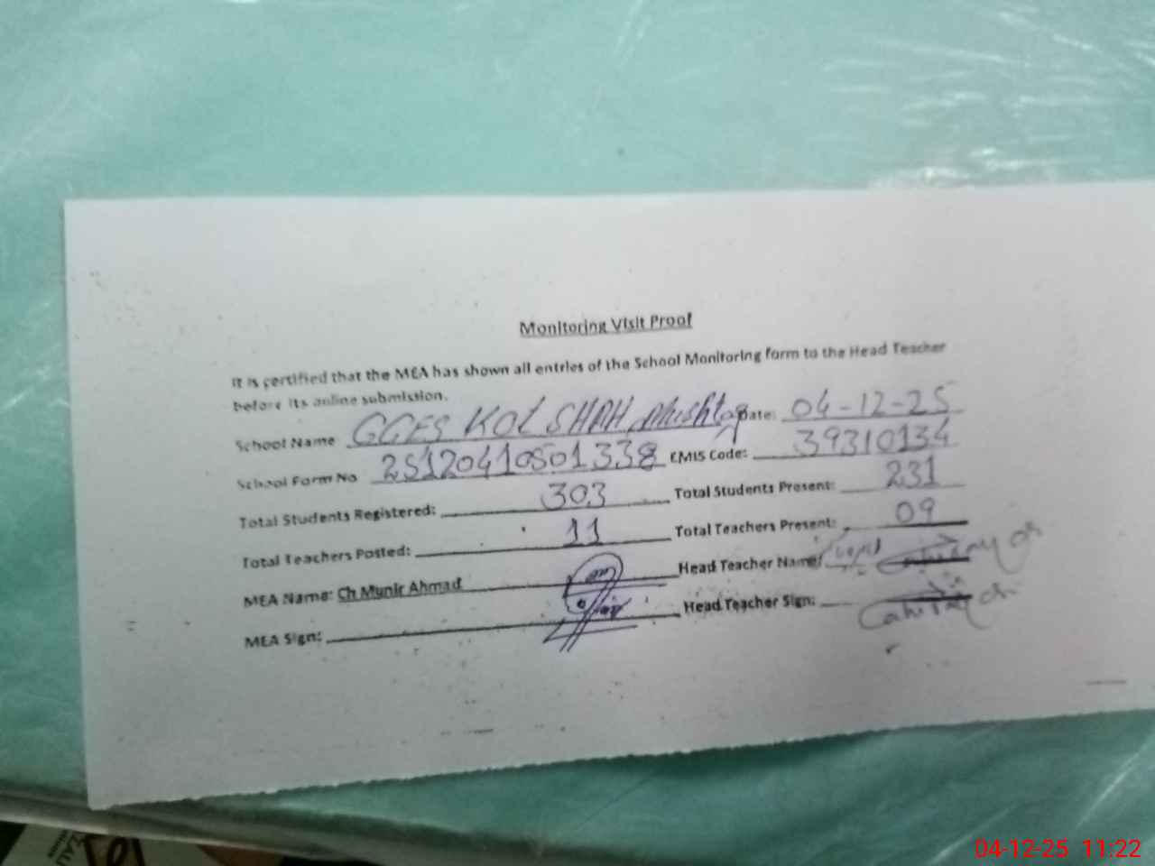 | EMIS Code: 39310134 | Name of School: GGES KOT SHAH MUSHTAQ | |||
