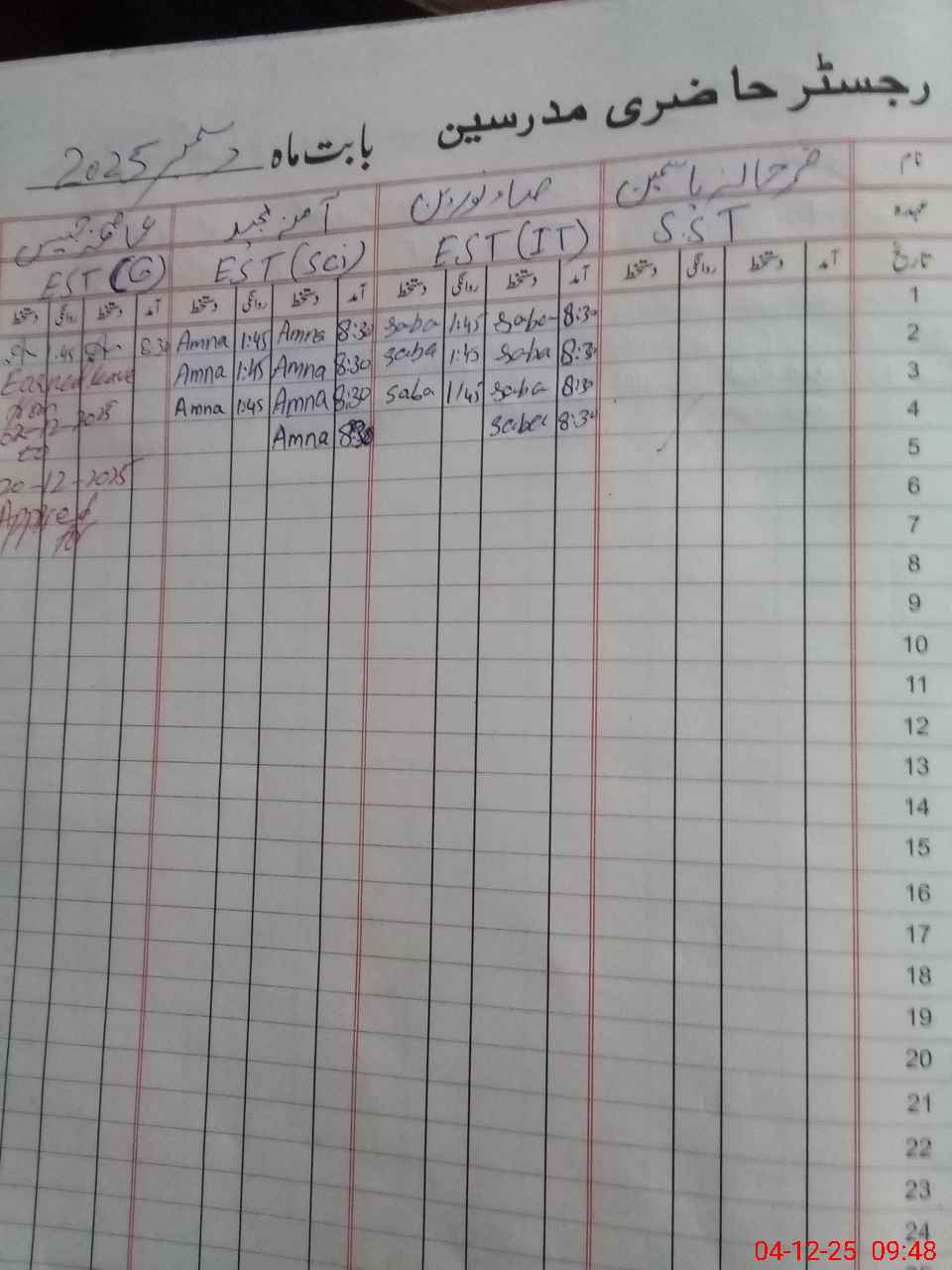 | 36**** | As**** Ja**** | Regular | 4 | 0 | 0 | 0 | 0 | 0 | 0 | 0 | 4 | Absent (Un-Authorized) | |