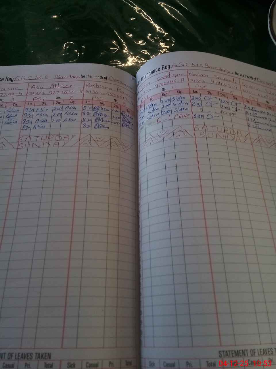 | Leave | Duty | Absent | Maternity | Medical | Ex- Pak |