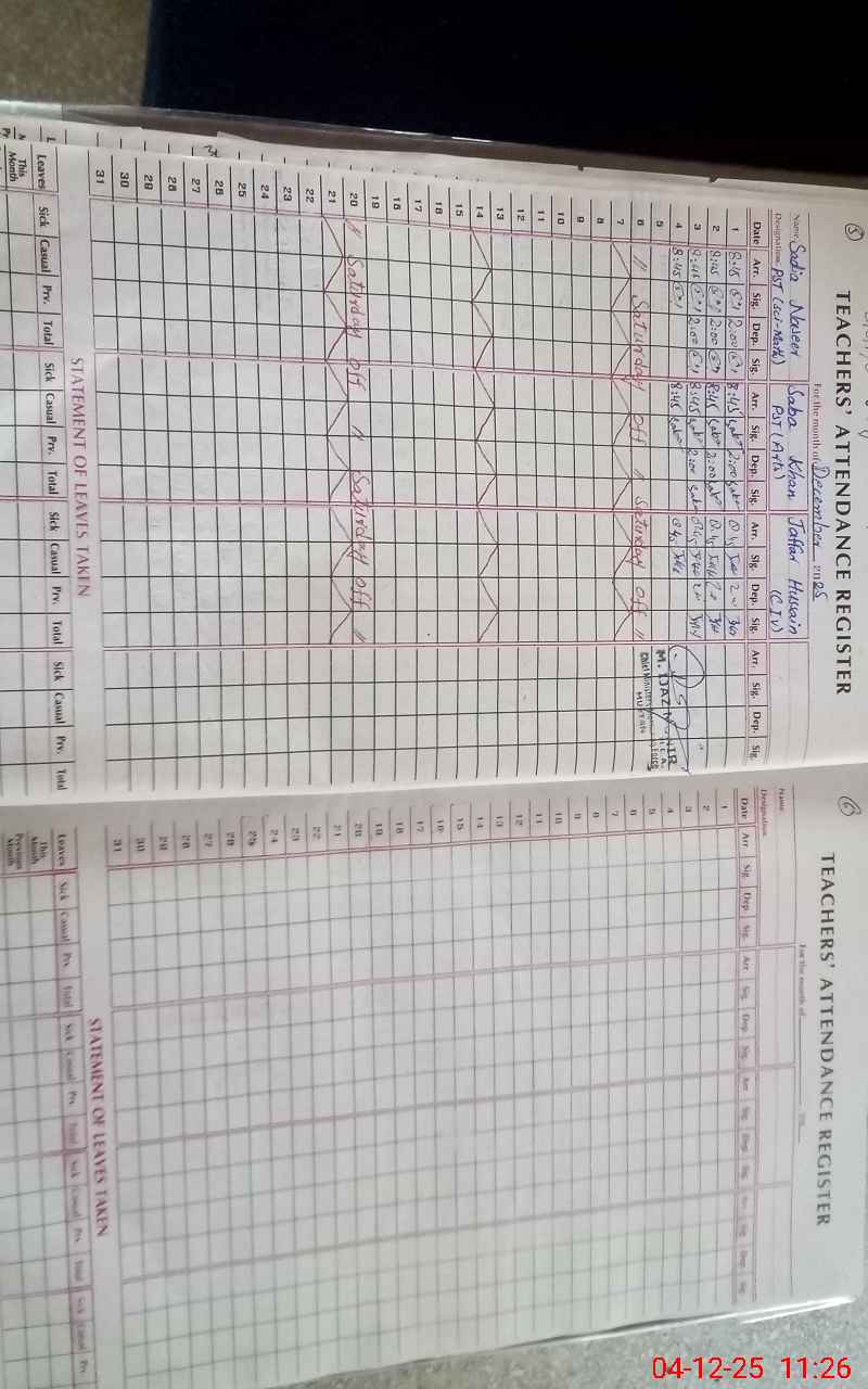 | Attendance Register | Head Teacher | MEA with School | Visit Proof |