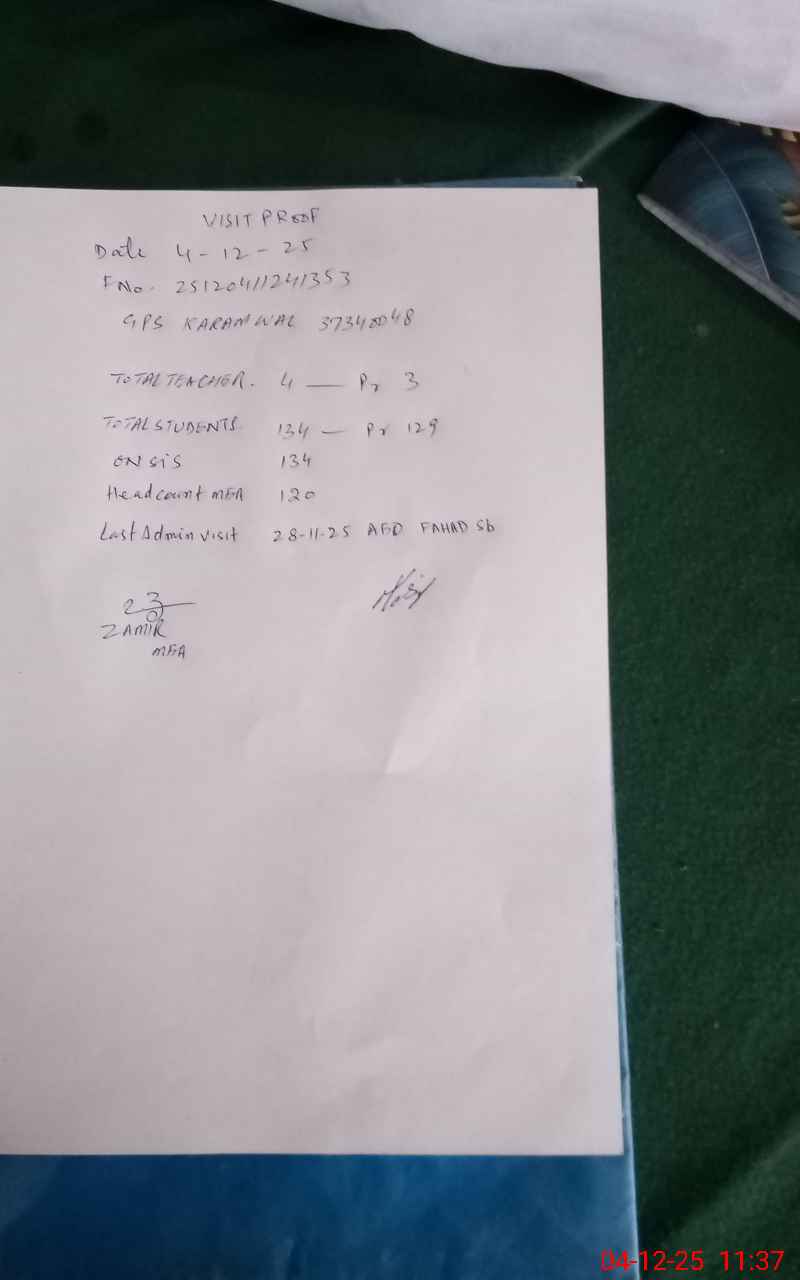 | EMIS Code: 37340048 | Name of School: GPS KARAM WAL | |||