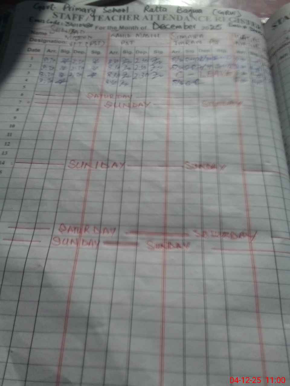 | Name: Sh**** Ma**** Designation: (School Headmaster's/Headmistress's) PST Phone/Cell Number: 03**** |