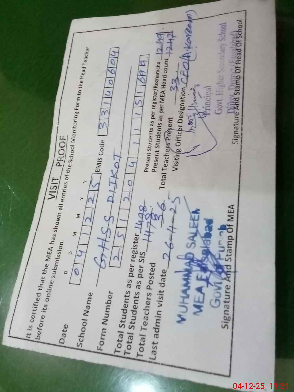 | EMIS Code: 33140604 | Name of School: GHSS DIJKOT FAISALABAD | |||