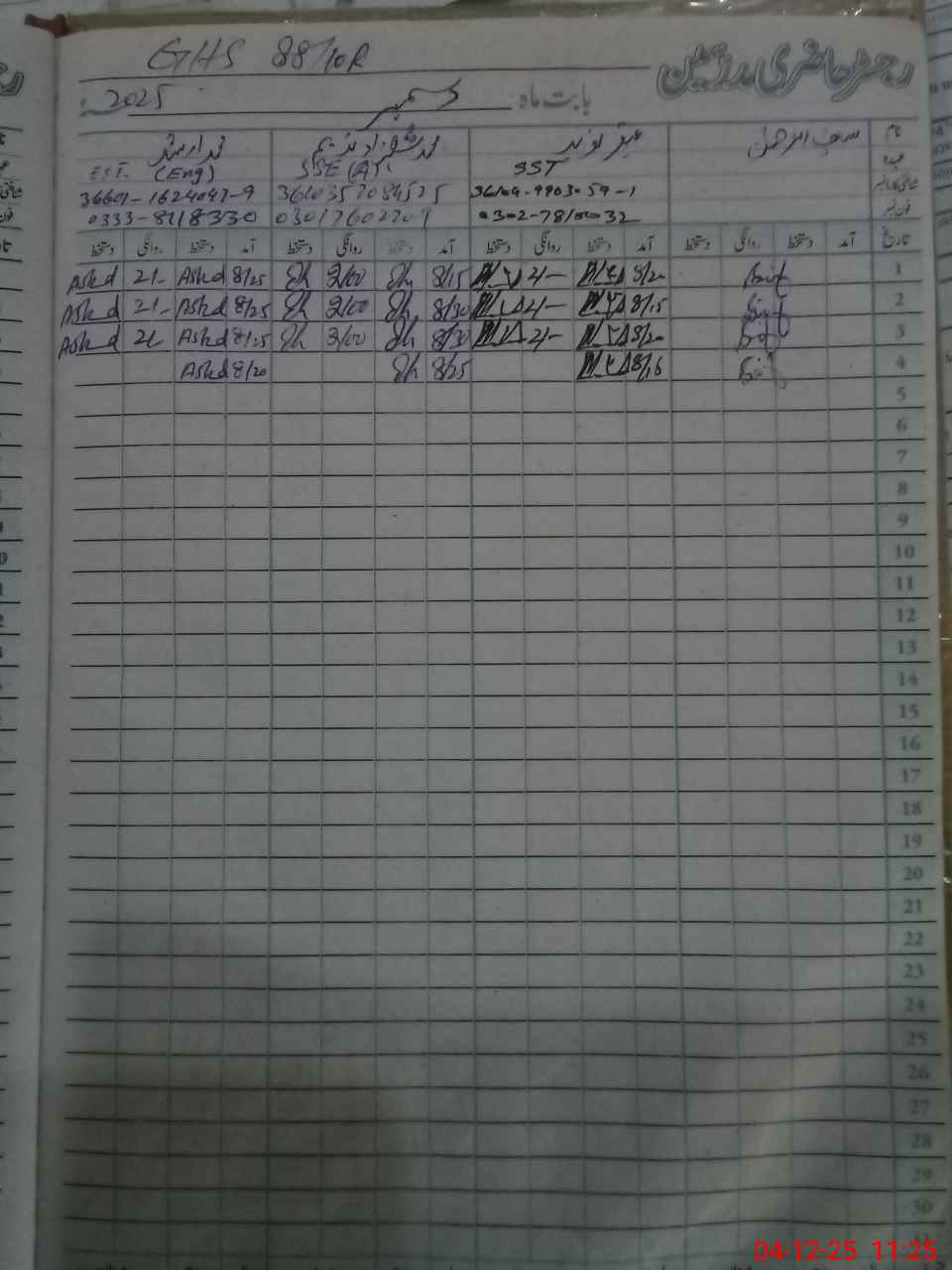 | Name: Sa**** UrRe**** Designation: (School Headmaster's/Headmistress's) Incharge HM Phone/Cell Number: 03**** |