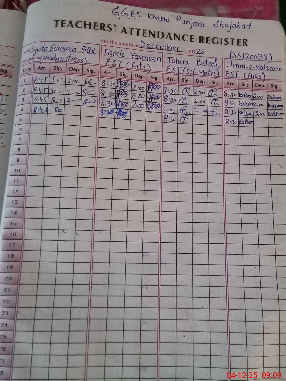 | Name: Sy**** Sa**** Bi**** Designation: (School Headmaster's/Headmistress's) Inch Head Phone/Cell Number: 03**** |