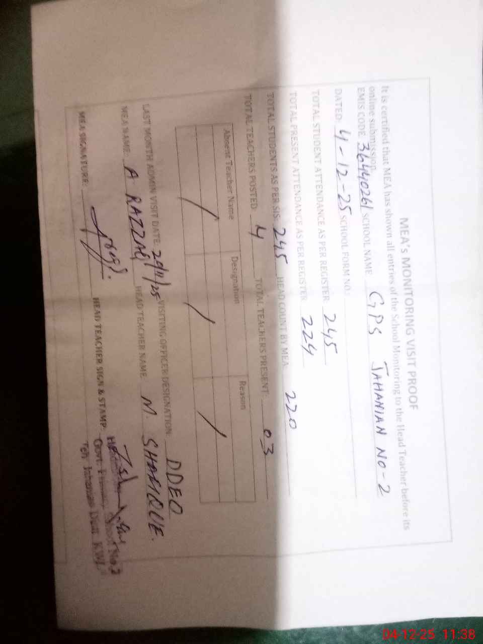 | EMIS Code: 36440261 | Name of School: GPS JAHANIAN NO.2 JAHANIAN | |||