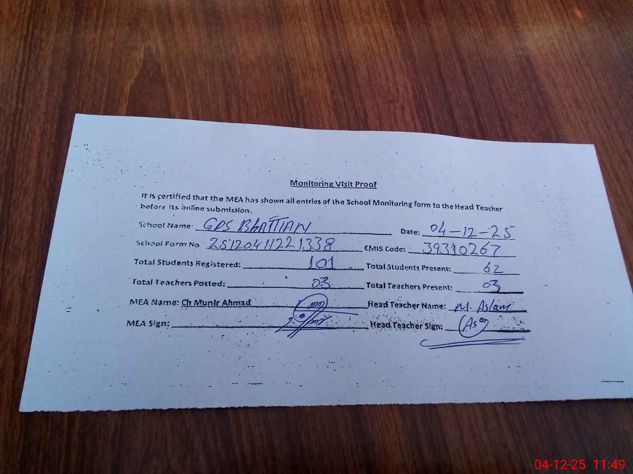 | EMIS Code: 39310267 | Name of School: GPS BATTIAN | |||