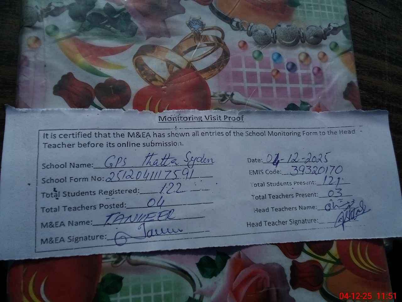 | EMIS Code: 39320170 | Name of School: GPS THATHA SYEDAN | |||