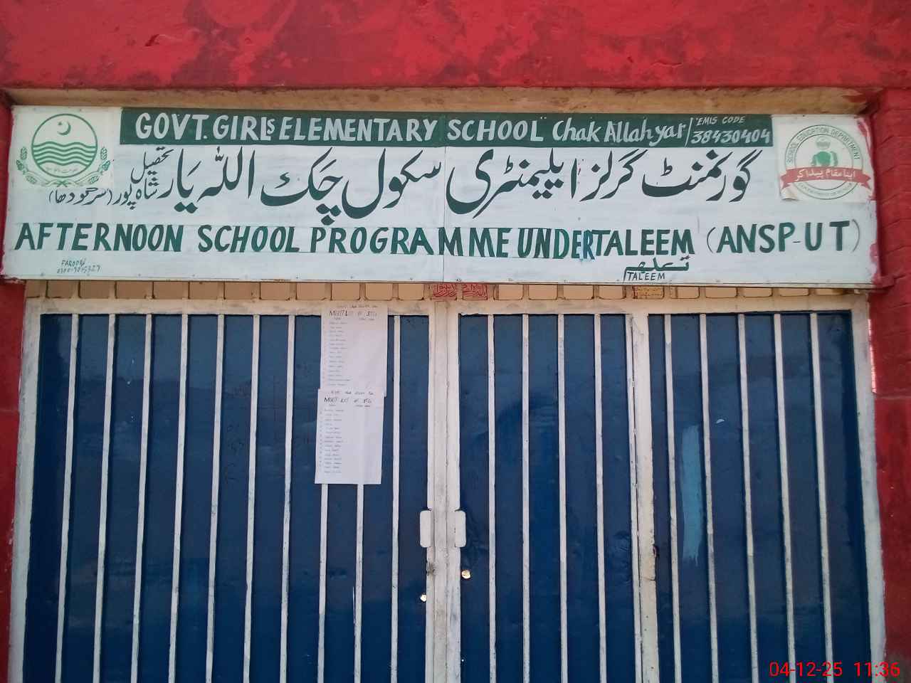 | EMIS Code: 38430404 | Name of School: GGPS CHAK ALLAH YAR | |||