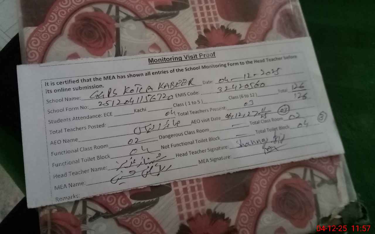 | EMIS Code: 32420560 | Name of School: GGPS KOTLA KABEER | |||