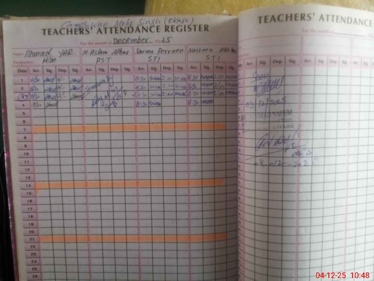 | Name: Ah**** Ya**** Designation: (School Headmaster's/Headmistress's) PST Phone/Cell Number: 03**** |