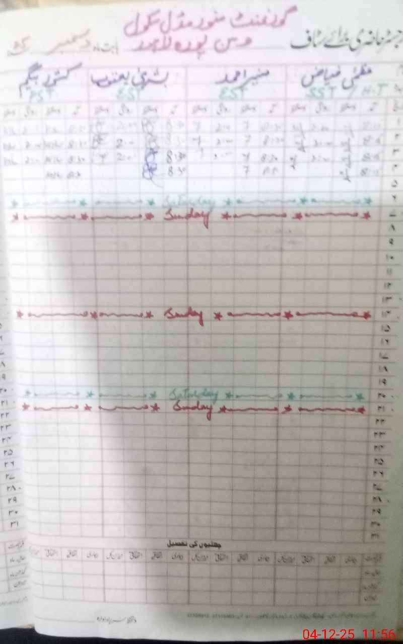| CNIC | Full Name | Designation | R/C | Absence During Last Calender Month |