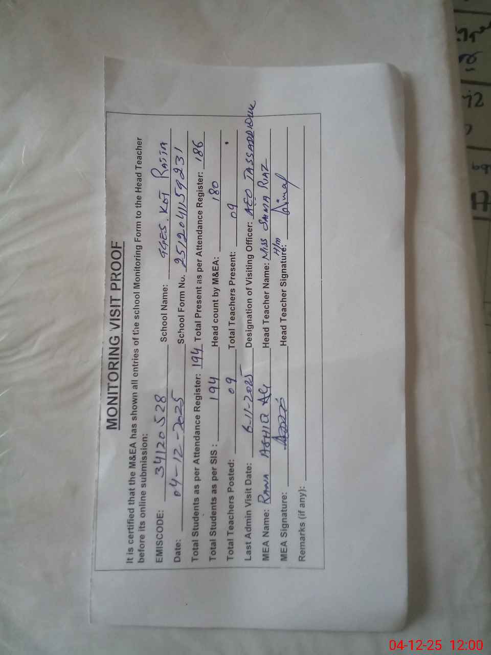 | EMIS Code: 34120528 | Name of School: GGES KOT RATTA | |||