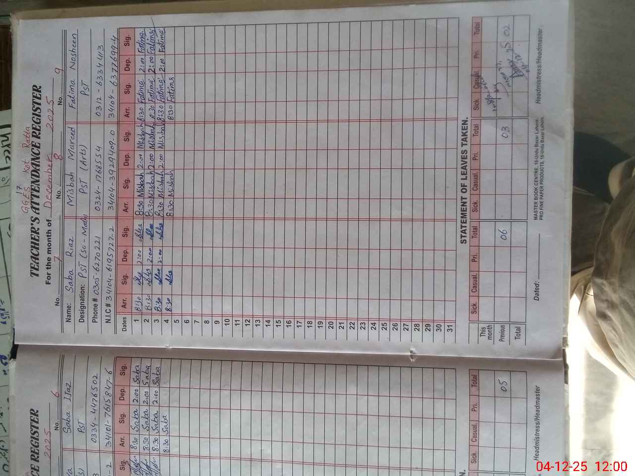| Name: Sa**** Ri**** Designation: (School Headmaster's/Headmistress's) EST Phone/Cell Number: 03**** |