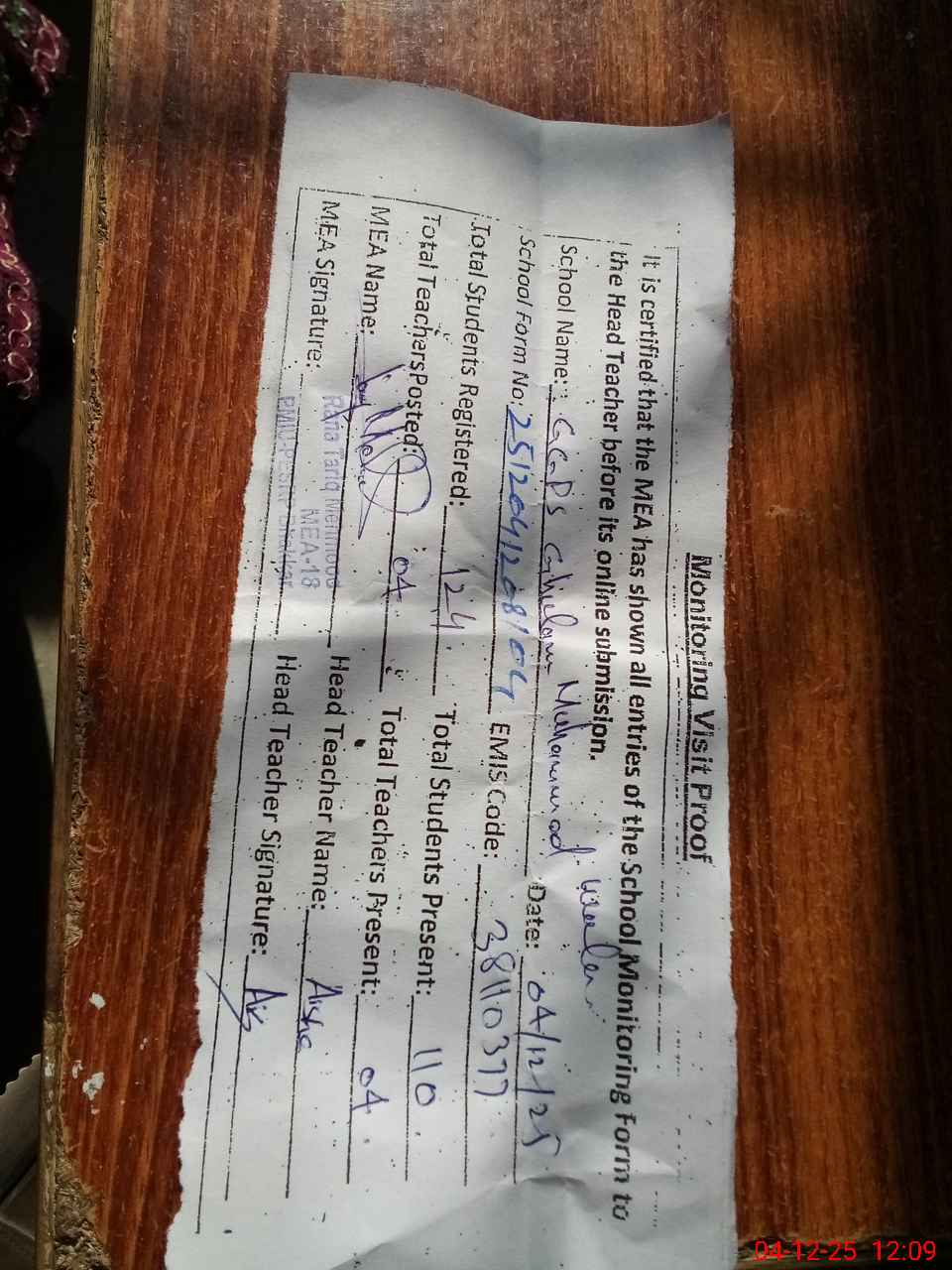 | EMIS Code: 38110377 | Name of School: GGPS GHULAM MUHAMMAD WALA | |||