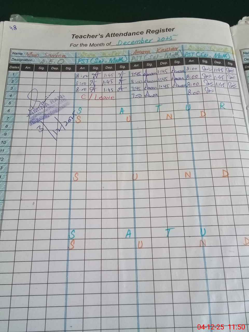 | 37**** | As**** Ba**** | PST Science/Maths | Regular | 0 | 0 | 0 | 0 | 0 | 0 | 0 | 0 | 0 | Casual |