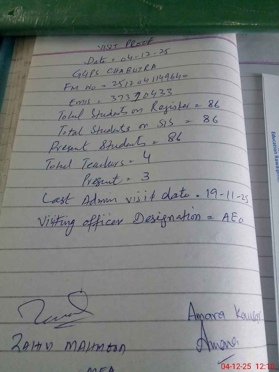 | EMIS Code: 37310433 | Name of School: GGPS CHABUTRA | |||