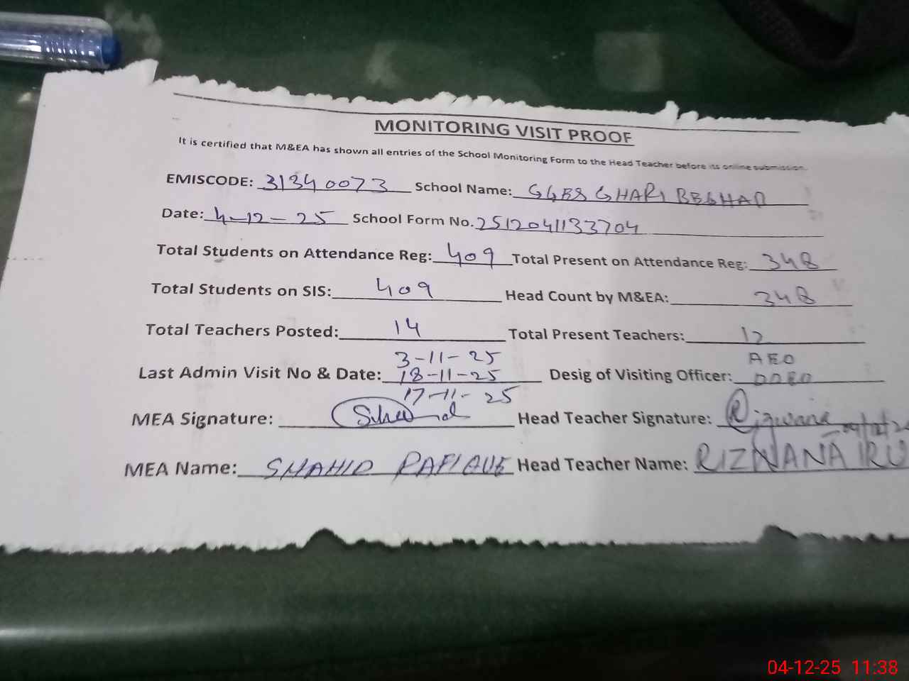 | EMIS Code: 31340073 | Name of School: GGES GHARI BEGHAR | |||