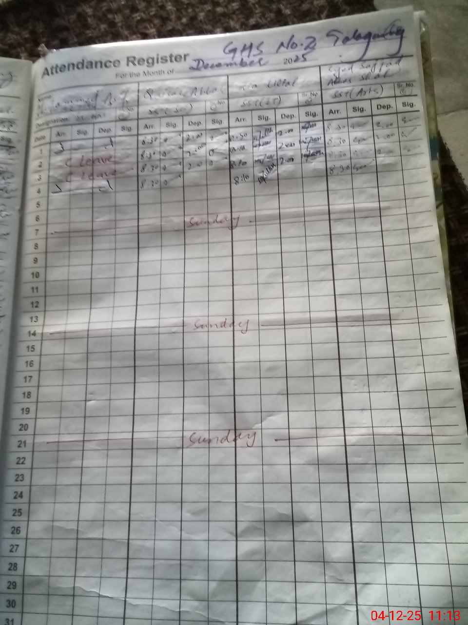 | No. of Students Present - Female | 0 | 0 | 0 | 0 | 0 | 0 | 0 | 0 | 0 | 0 | 0 | 0 | 0 | |||