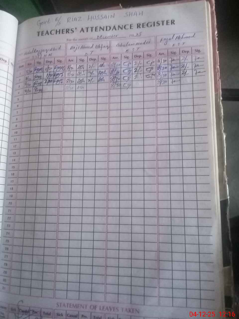 | EMIS Code: 31320963 | Name of School: GES RIAZ HUSSAIN SHAH | |||