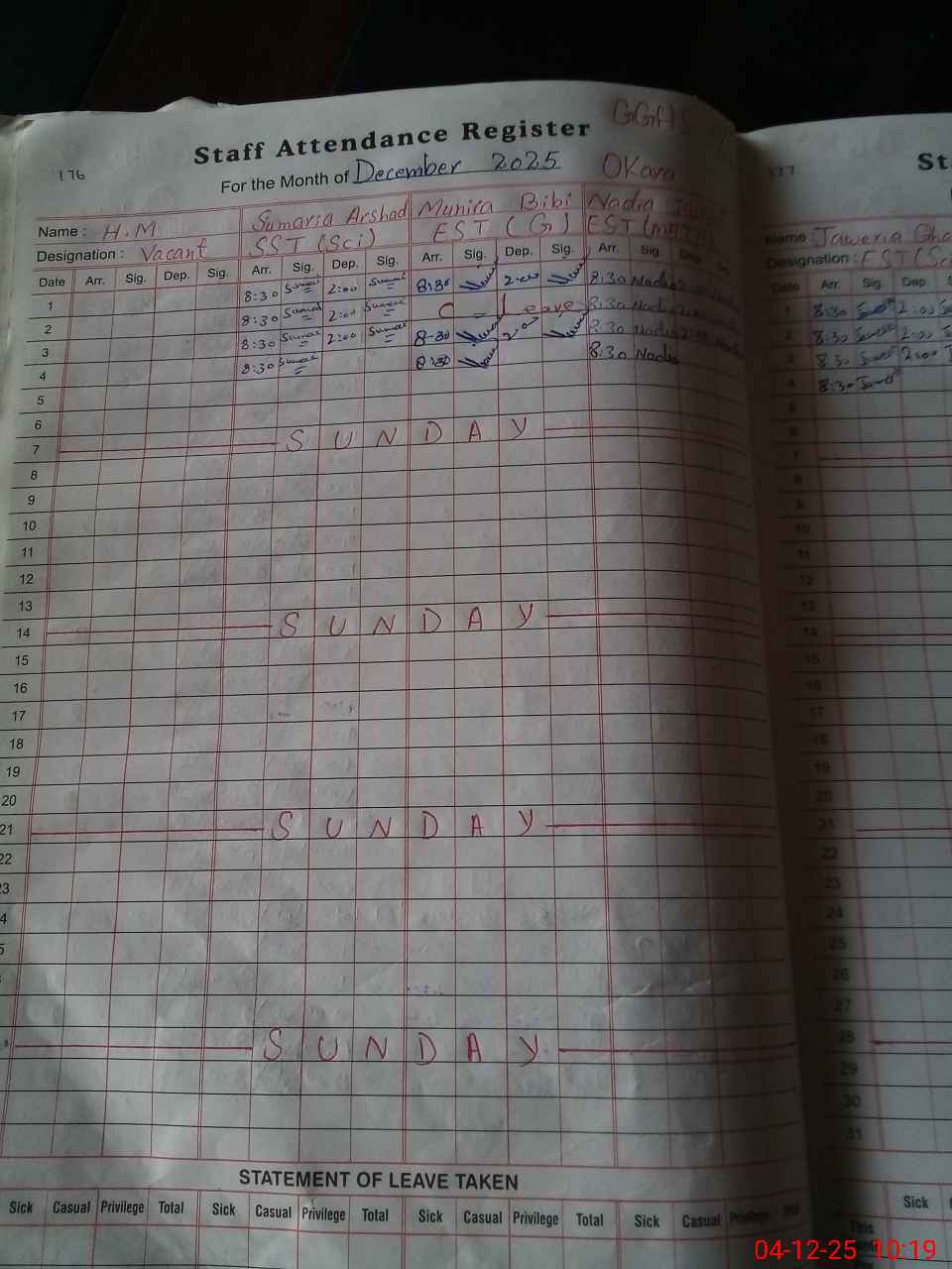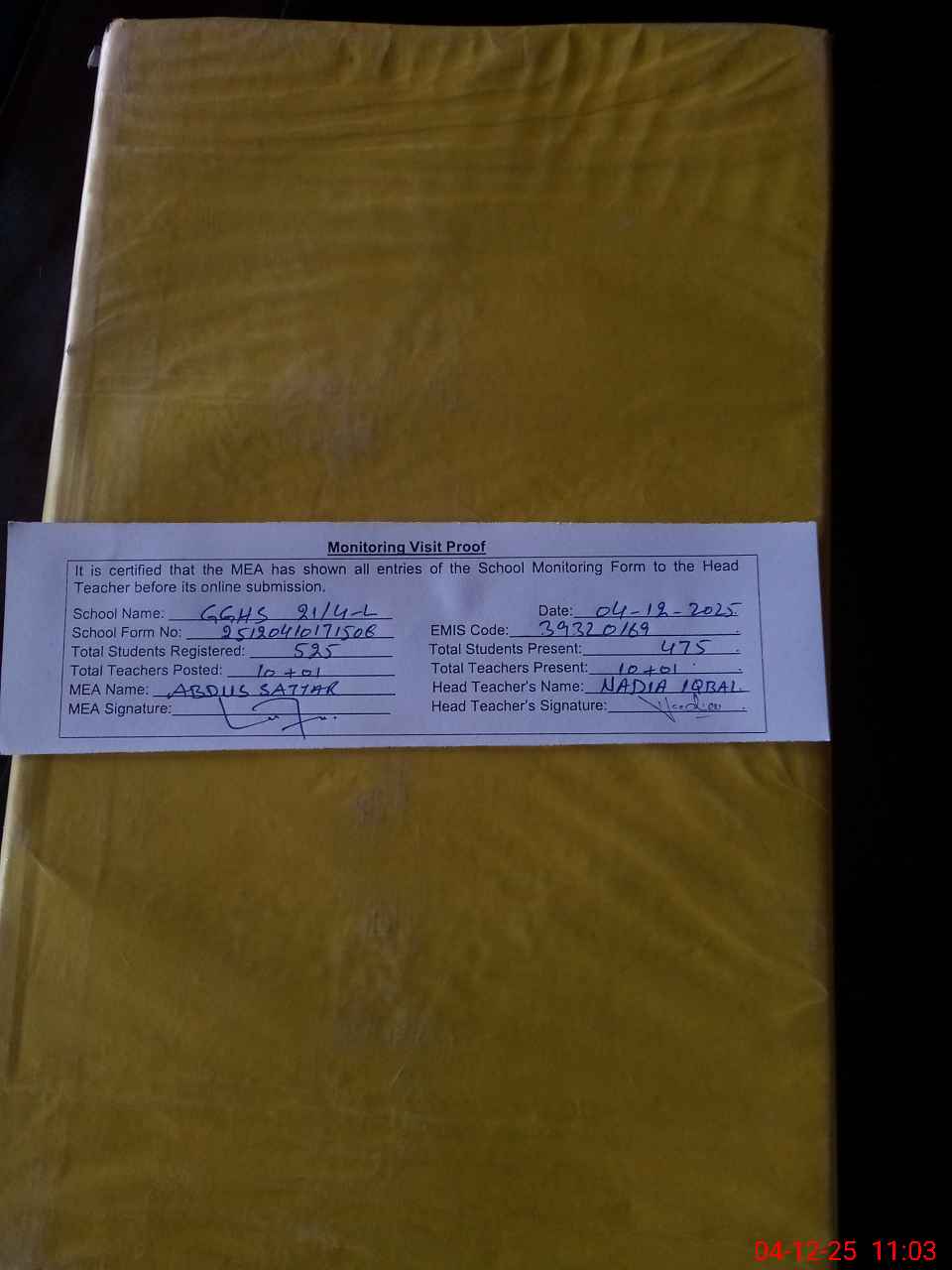 | EMIS Code: 39320169 | Name of School: GGHS CHAK NO. 21/4-L | |||