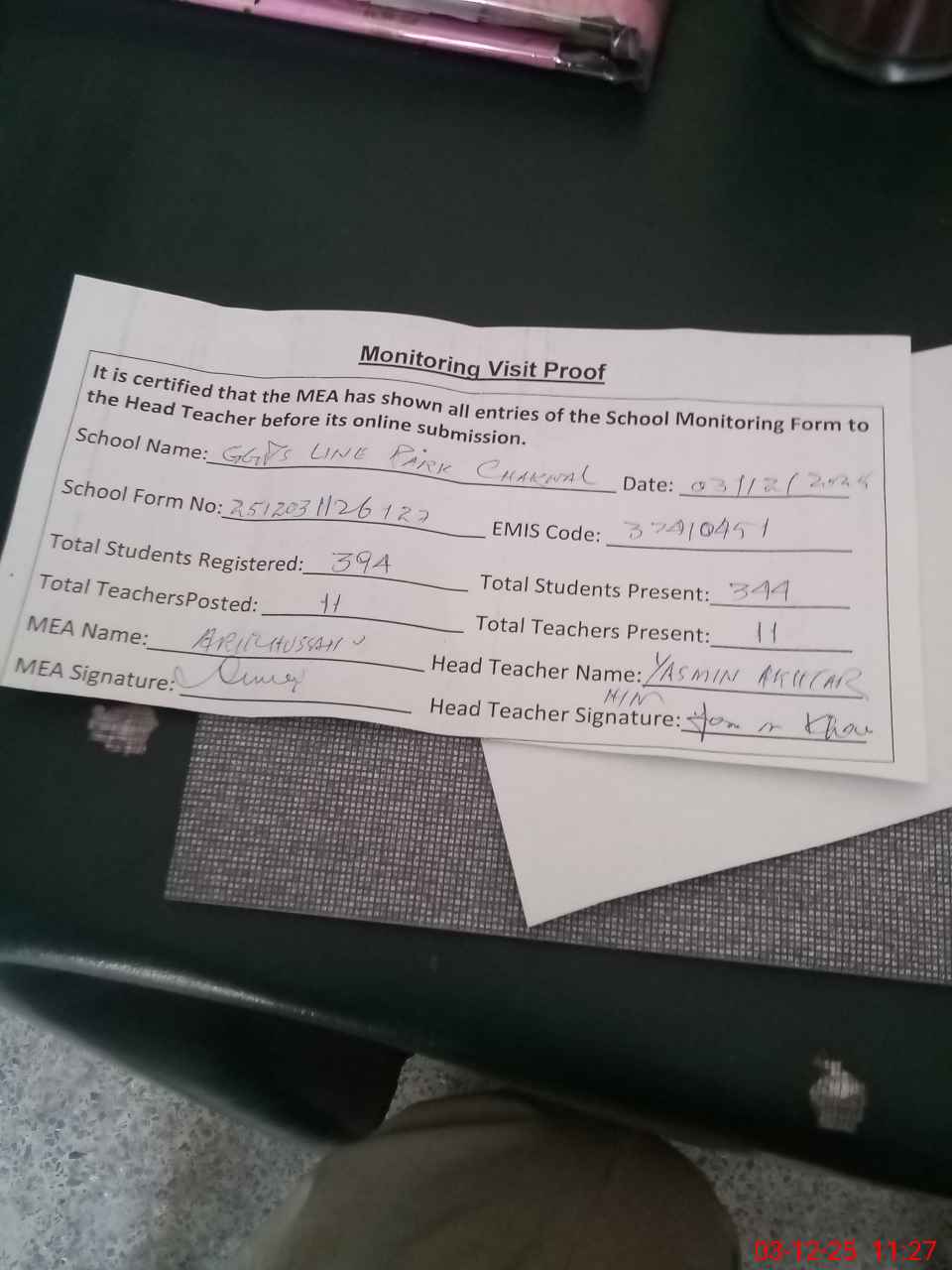 | EMIS Code: 37410451 | Name of School: GGPS LINE PARK CHAKWAL | |||