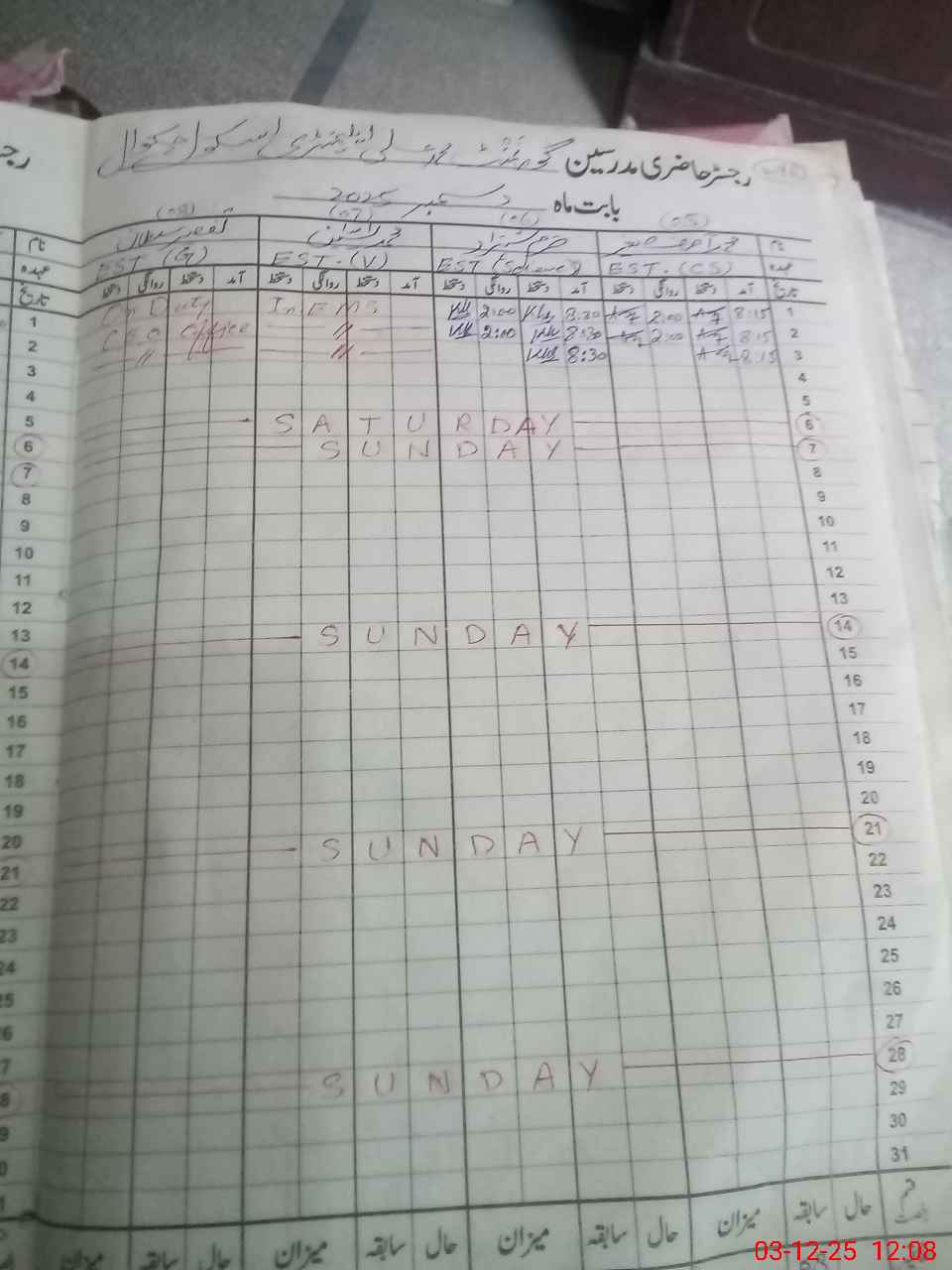 | CNIC | Full Name | Designation | R/C | Absence During Last Calender Month |