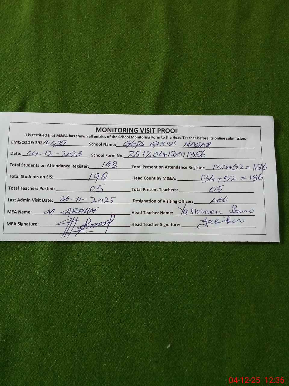 | EMIS Code: 39210429 | Name of School: GGPS BASTI GHOUS NAGAR | |||