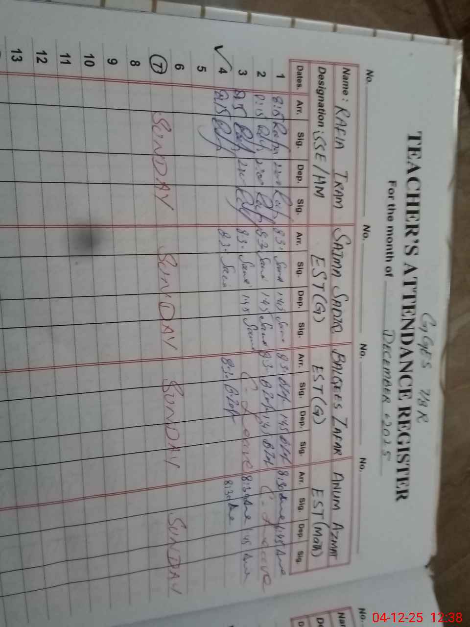 | Name: Ra**** Ir**** Designation: (School Headmaster's/Headmistress's) SSE Urdu Phone/Cell Number: 03**** |