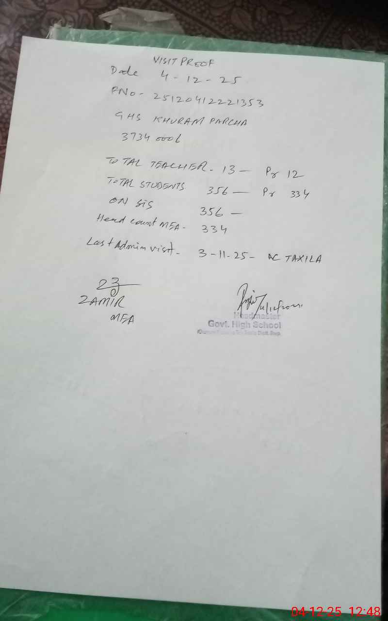 | EMIS Code: 37340006 | Name of School: GHS KHURRAM PARACHA | |||