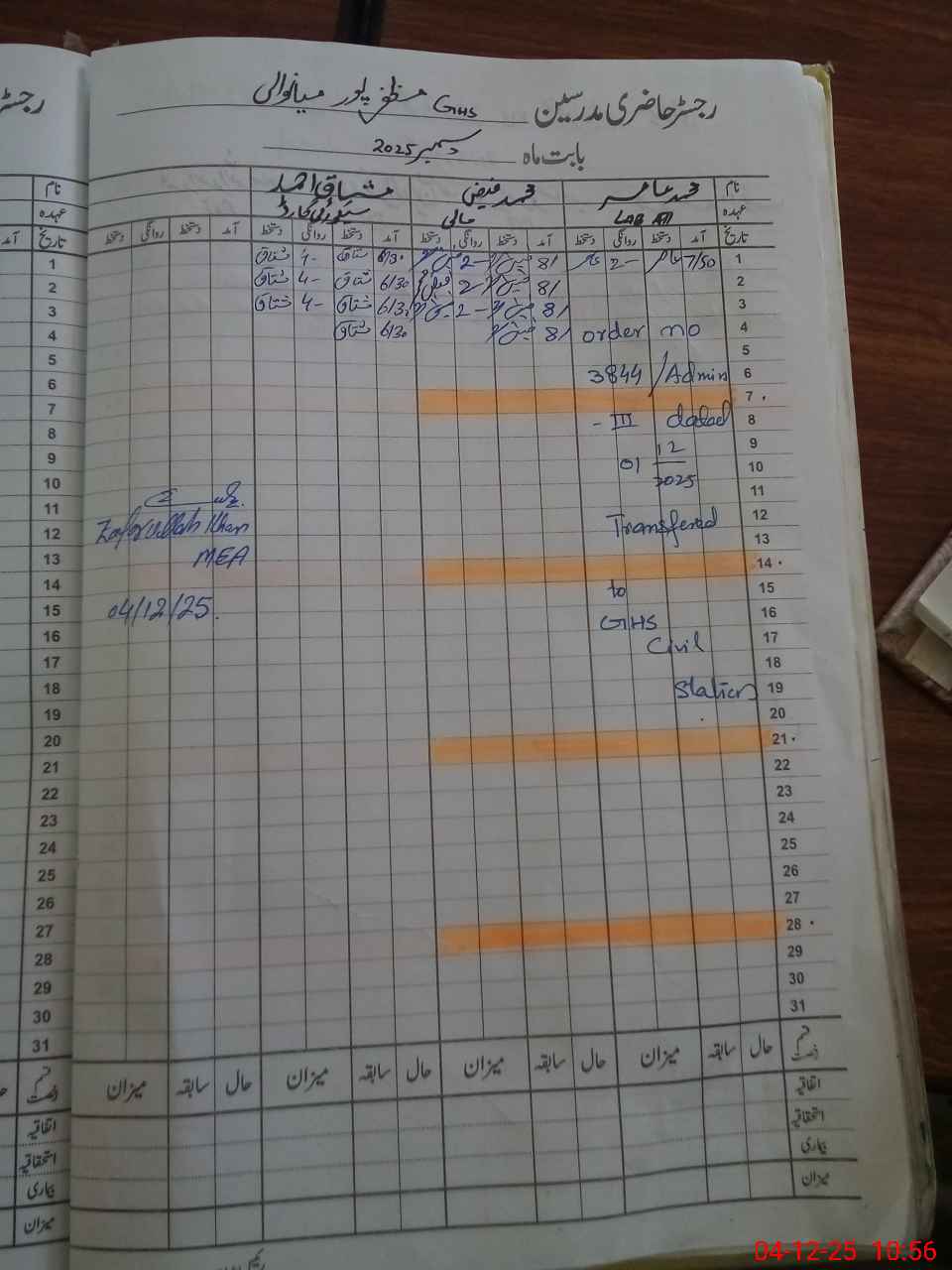 | District: MIANWALI | Tehsil: MIANWALI | Markaz: SECONDARY-WING | Level: High | |
