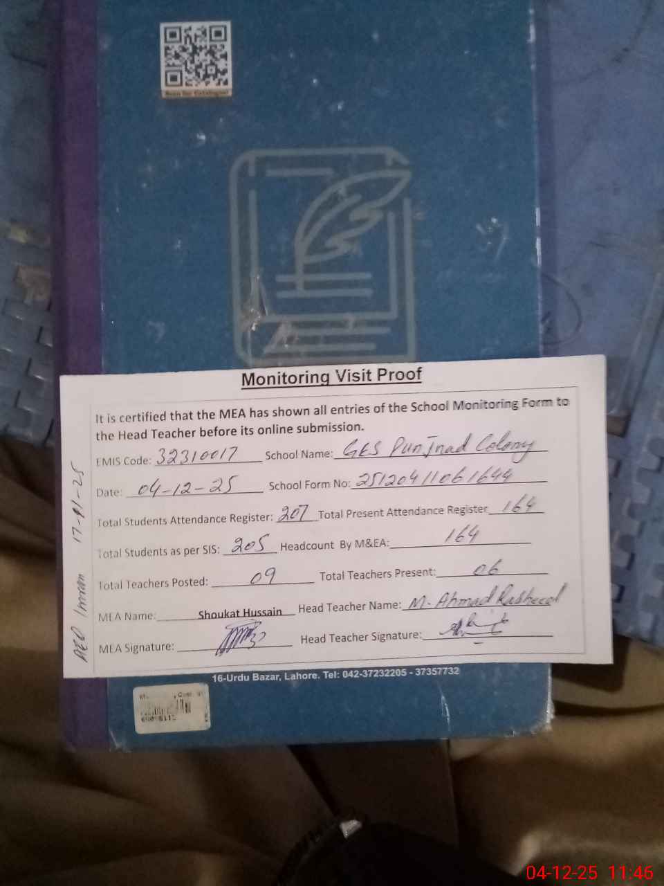 | EMIS Code: 32310017 | Name of School: GES PUNJNAD COLONY | |||