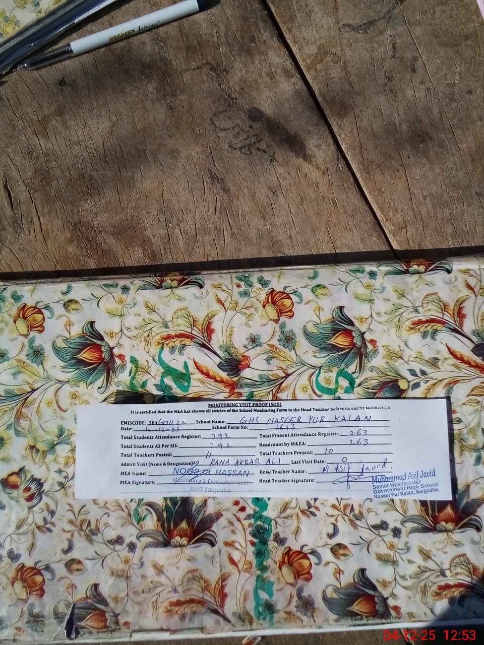| EMIS Code: 38460022 | Name of School: GHS NASEER PUR KALAN | |||