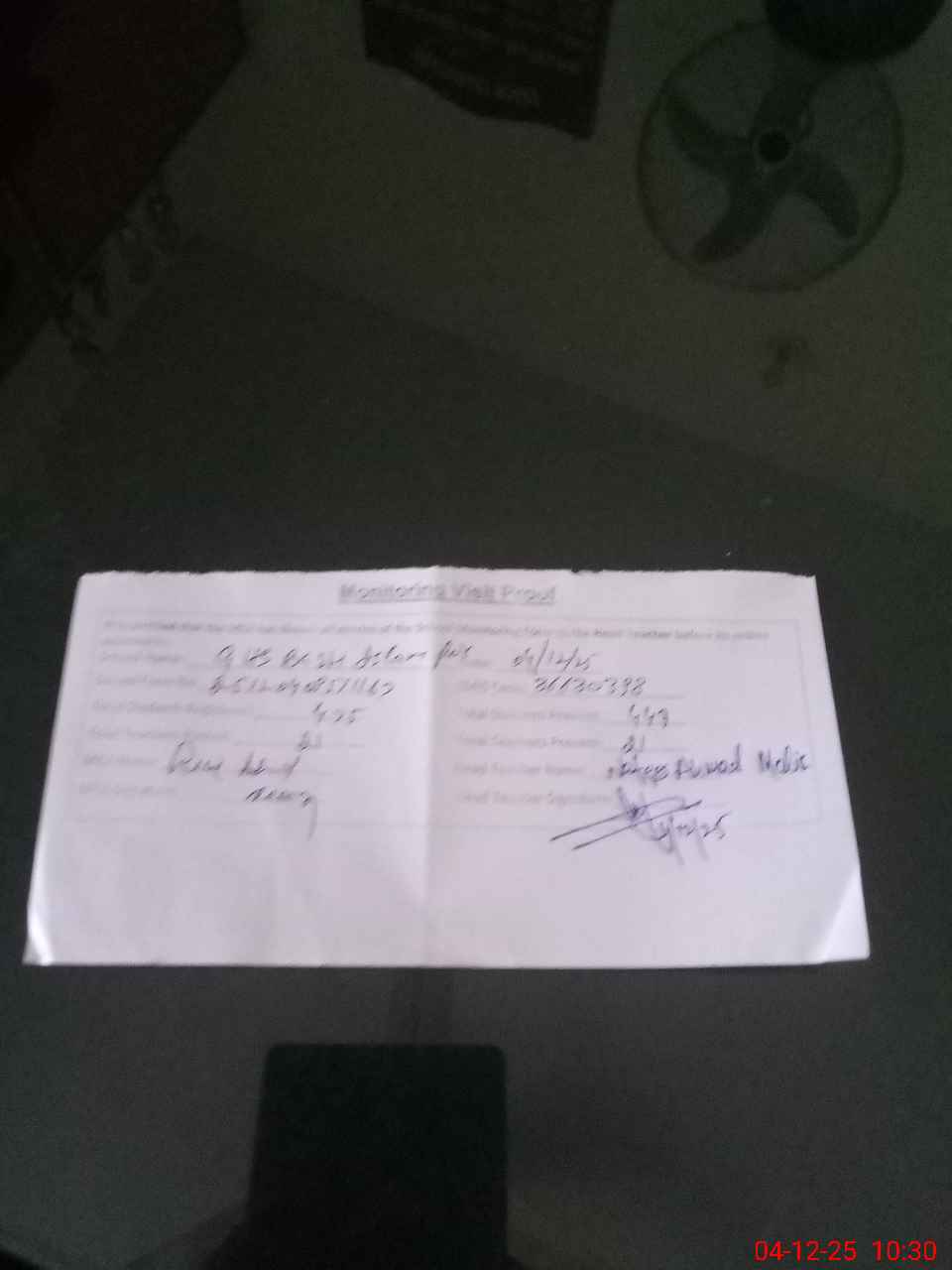 | Monitoring Date: 04-12-2025 | Start Time: 04-12-2025 09:12 AM | End Time: 04-12-2025 10:30 AM | Name of MEA: Ri**** Ah**** | |