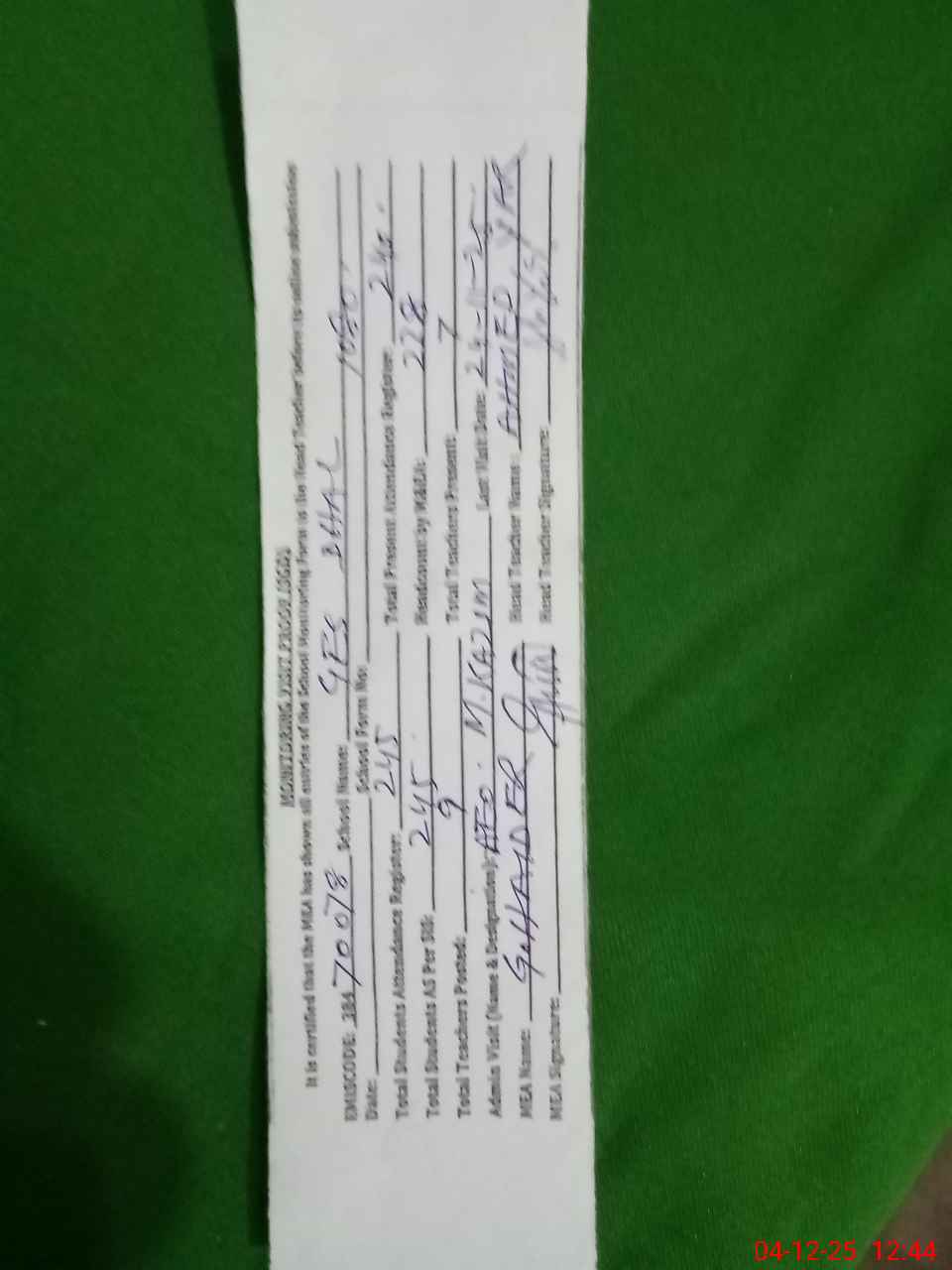 | Attendance Register | Head Teacher | MEA with School | Visit Proof |