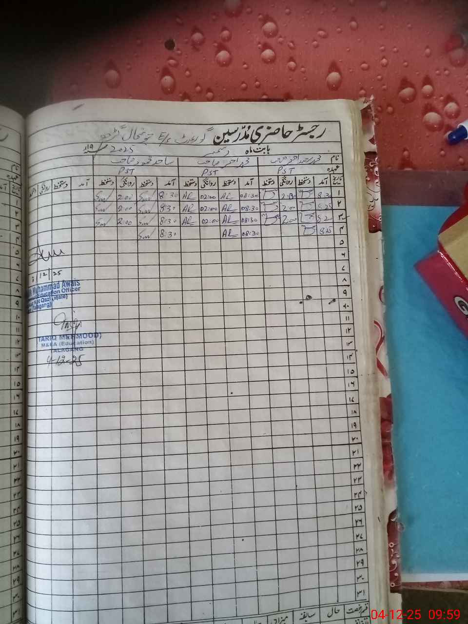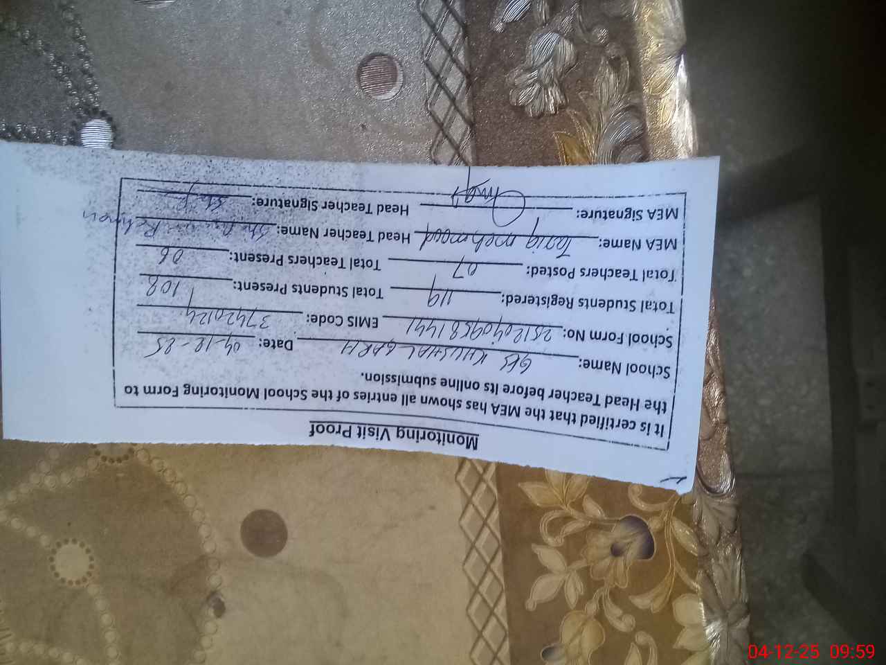 | Attendance Register | Head Teacher | MEA with School | Visit Proof |