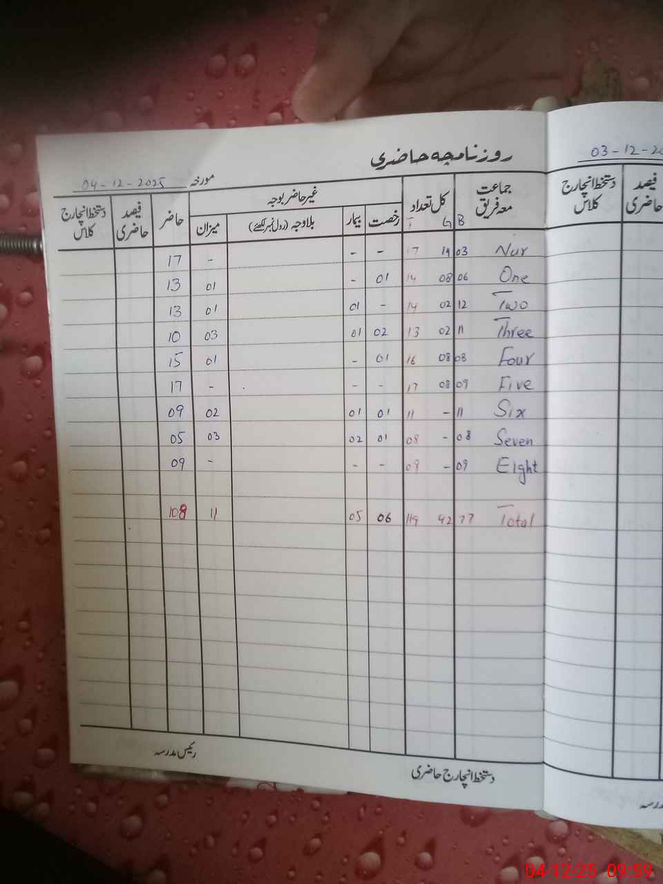 | Total Students Present | 0 | 0 | 13 | 13 | 10 | 15 | 17 | 9 | 5 | 9 | 108 | |||||