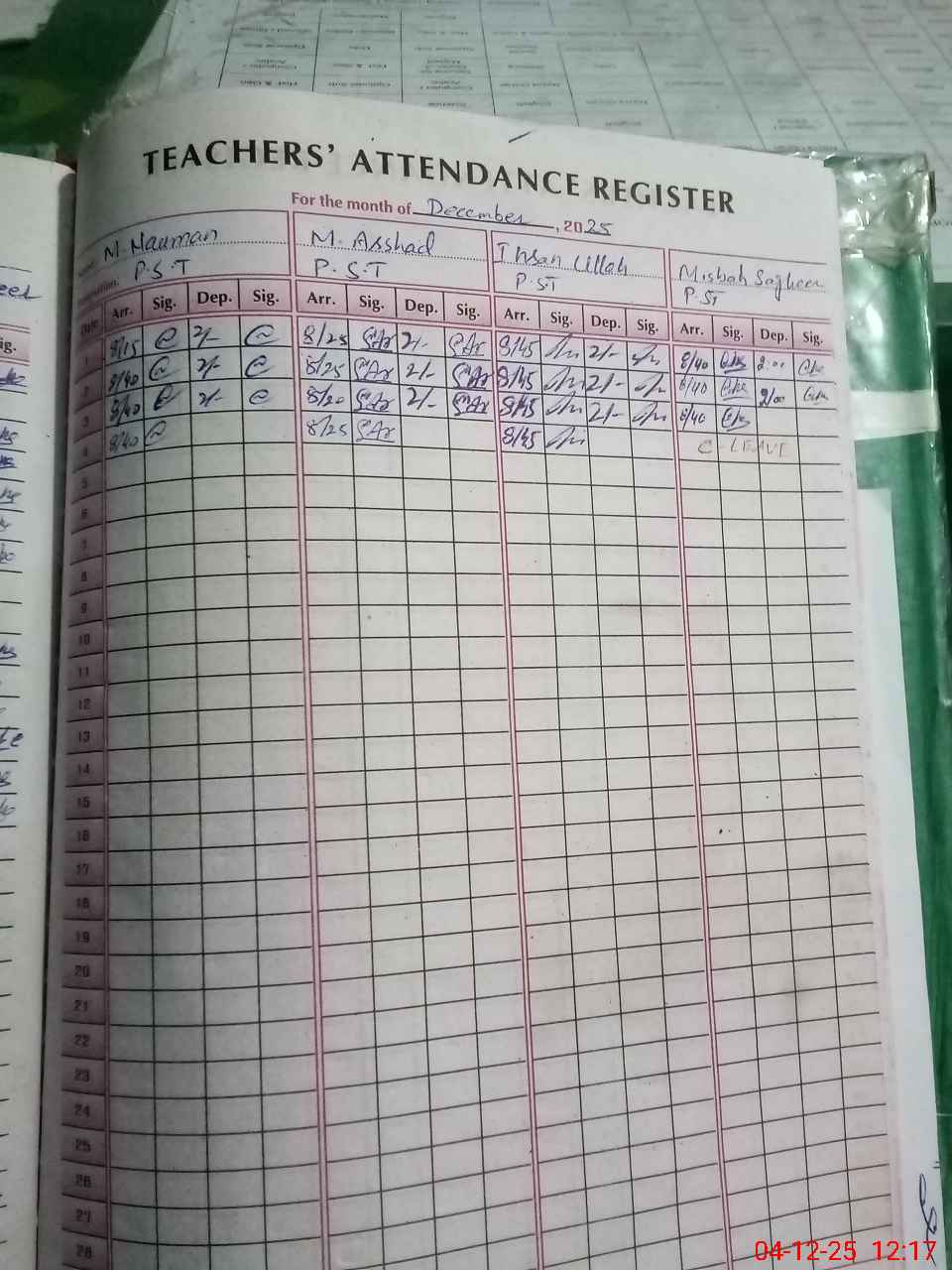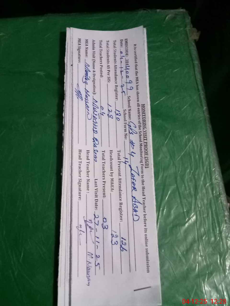 | Attendance Register | Head Teacher | MEA with School | Visit Proof |
