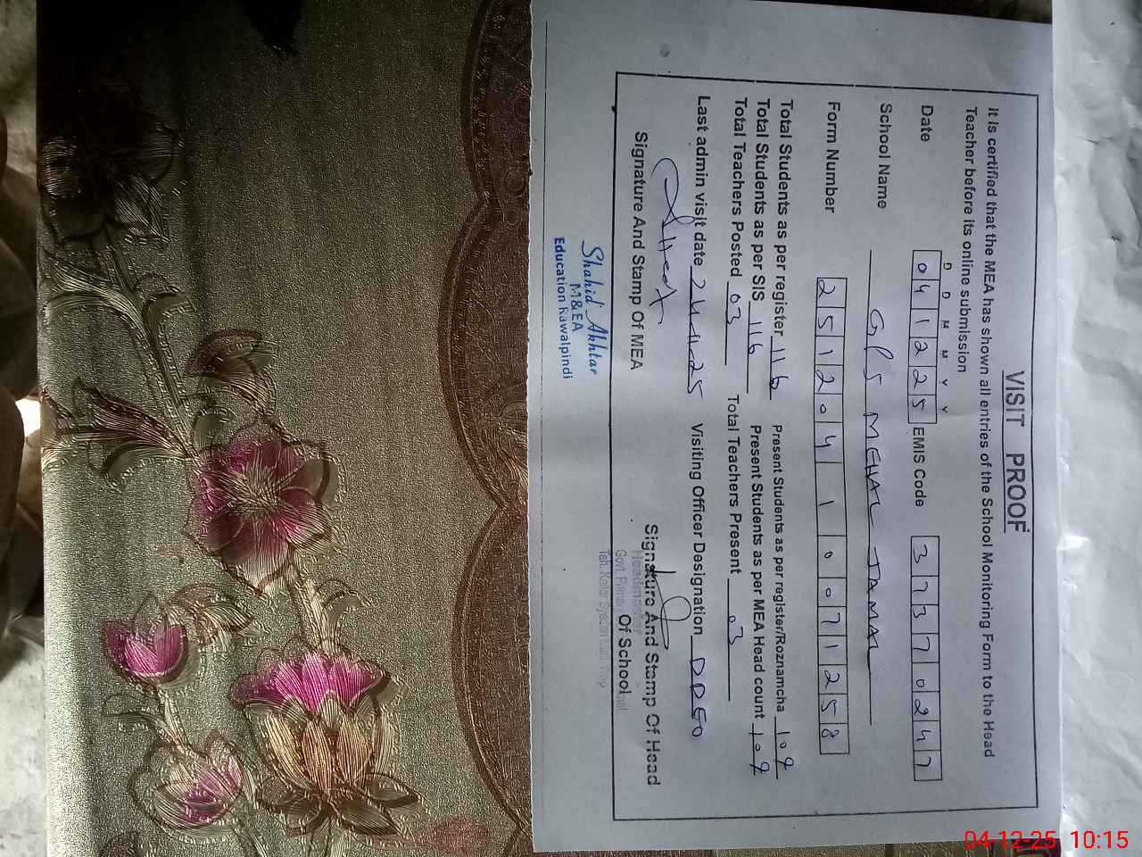 | EMIS Code: 37370247 | Name of School: GPS MEHAL JAMAL | |||