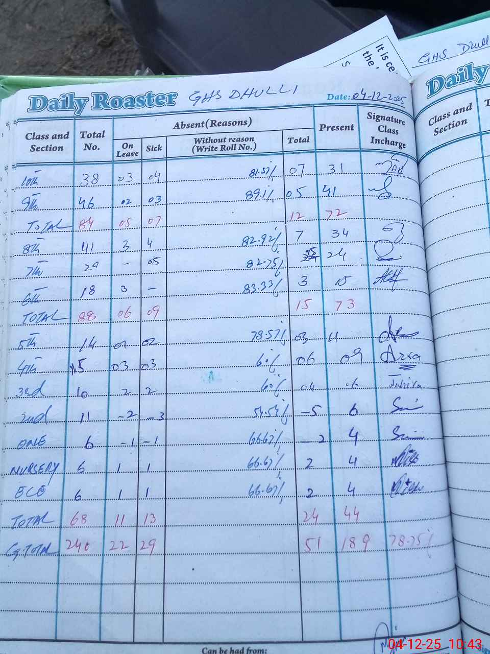 | Total no. of Classrooms: 20 No. of Classrooms Used for Teaching: 11 No. of Classrooms Storing Old Furniture, FTBs, etc: 0Comments if Any: 0 |