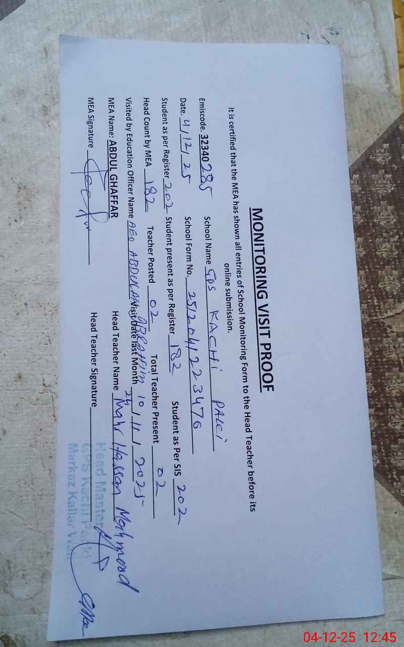 | EMIS Code: 32340285 | Name of School: GPS KACHI PACKI | |||