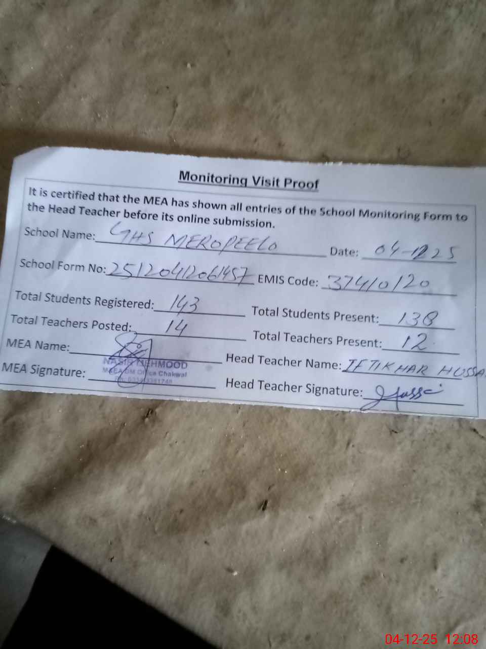 | EMIS Code: 37410120 | Name of School: GHS MEHRO PEELO | |||