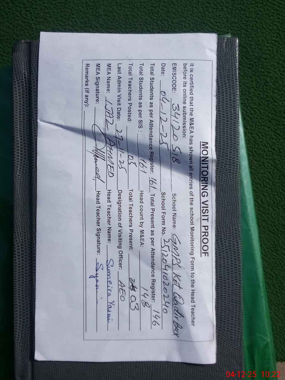 | EMIS Code: 34120518 | Name of School: GMPS KOT QADIR BUKSH | |||