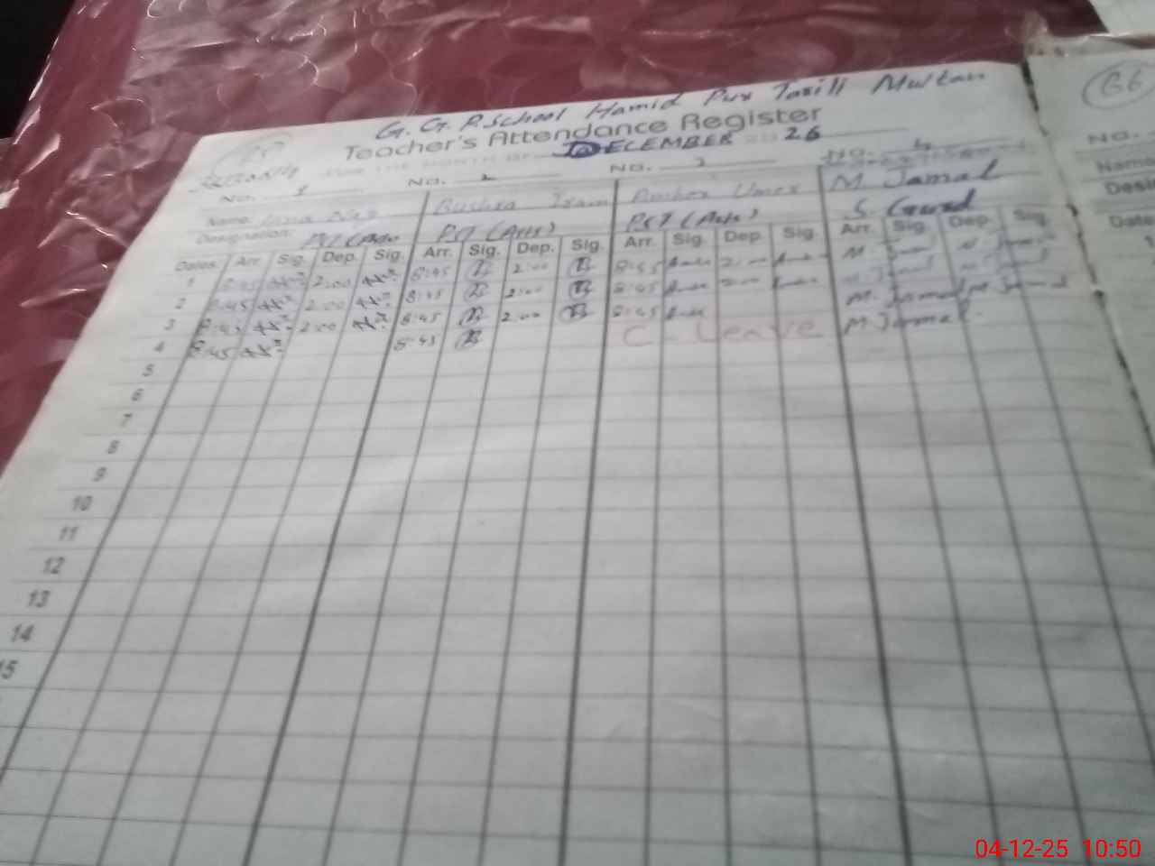 | EMIS Code: 36130614 | Name of School: GGPS HAMID PUR TARELI MULTAN | |||