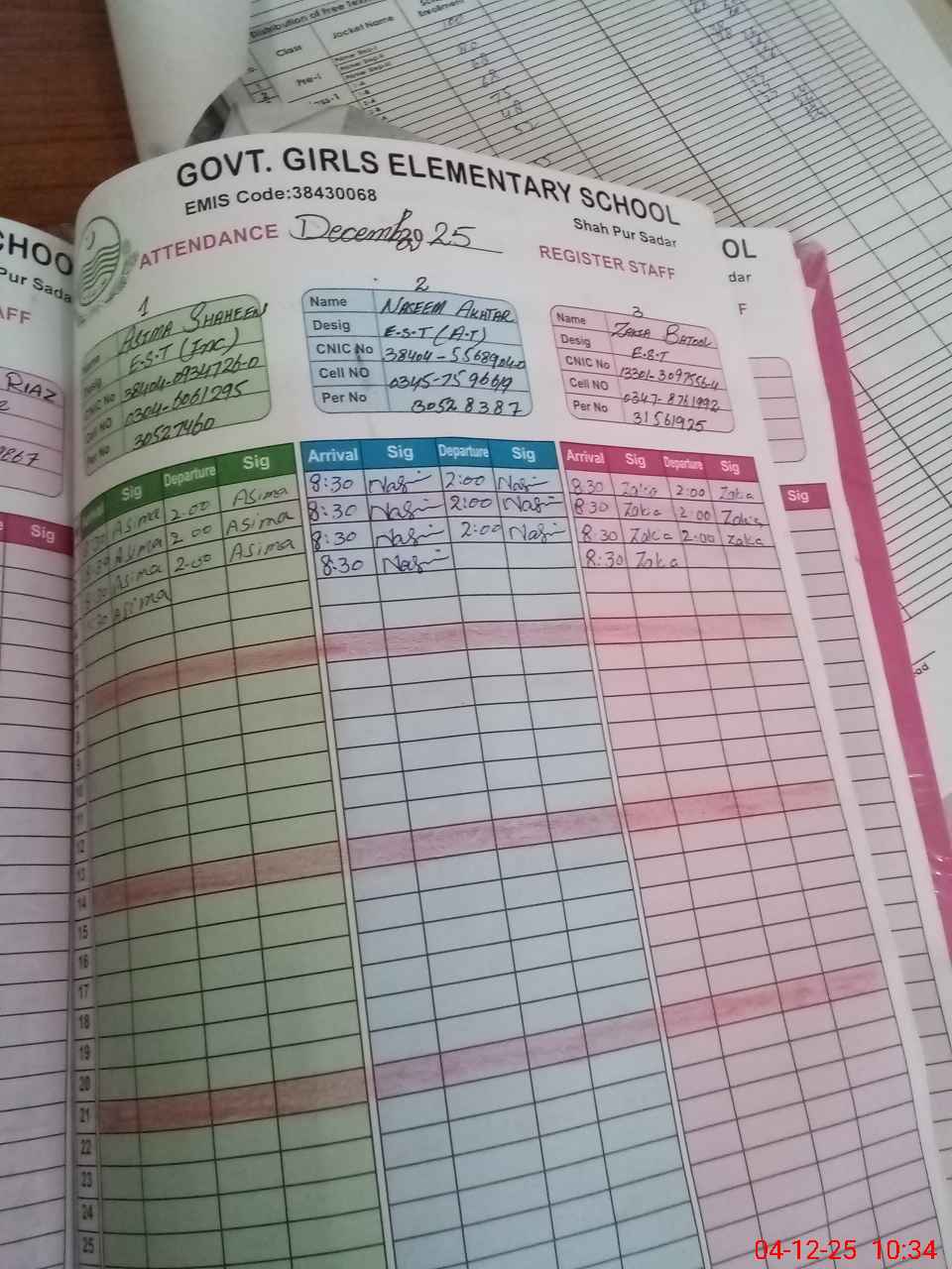 | CNIC | Full Name | Designation | R/C | Absence during last cal. month |