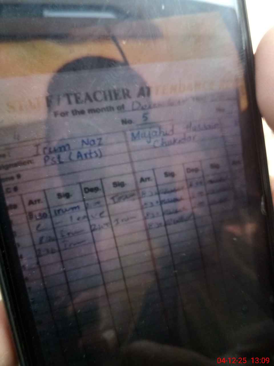 | Name: Si**** Bi**** Designation: (School Headmaster's/Headmistress's) SESE Phone/Cell Number: 03**** |