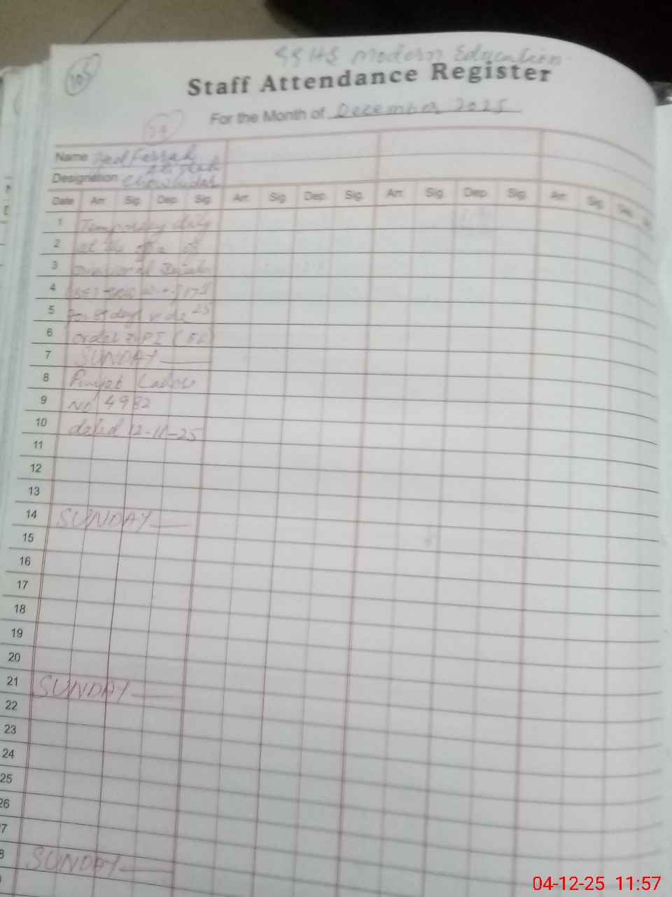 | 00**** | Sy**** Fa**** | CHOKIDAR | Regular | 0 | 0 | 0 | 0 | 0 | 0 | 0 | 0 | 0 | Other |