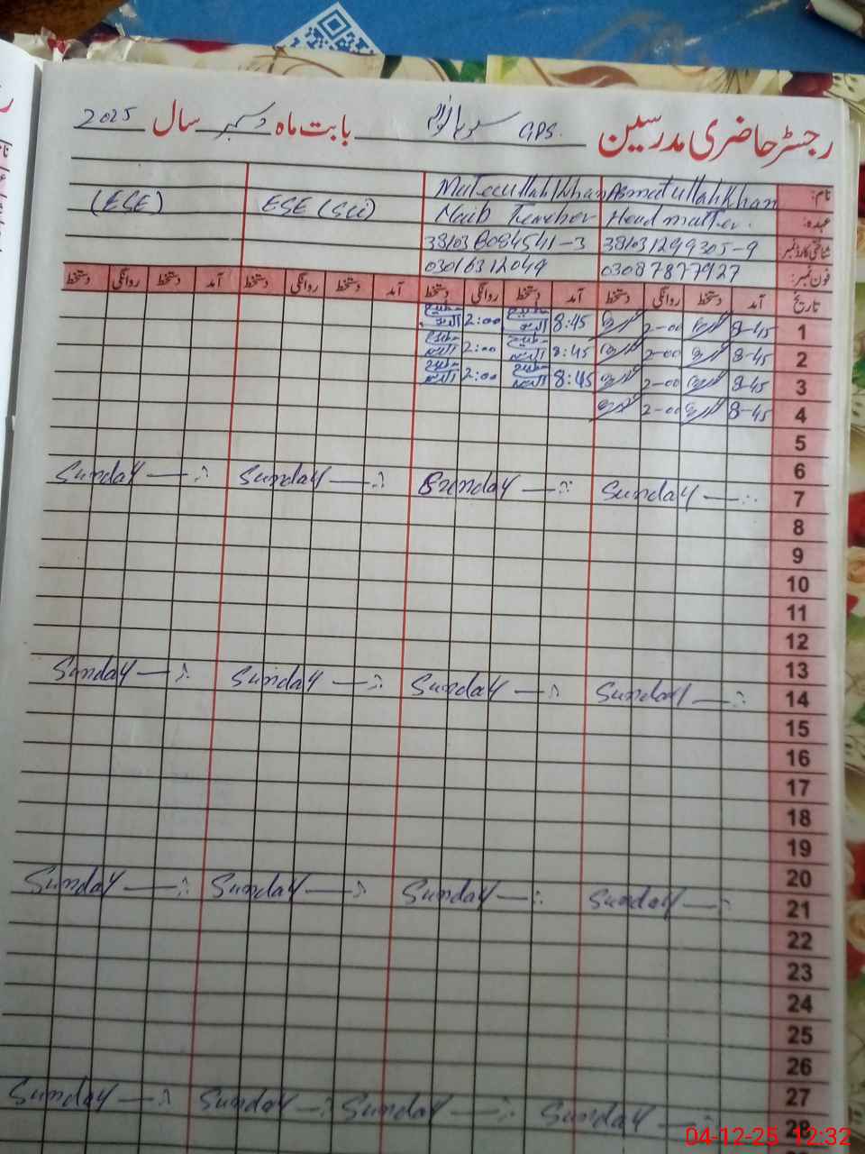 | Name: AS**** UL**** Kh**** Designation: (School Headmaster's/Headmistress's) PTC/JV Phone/Cell Number: 03**** |